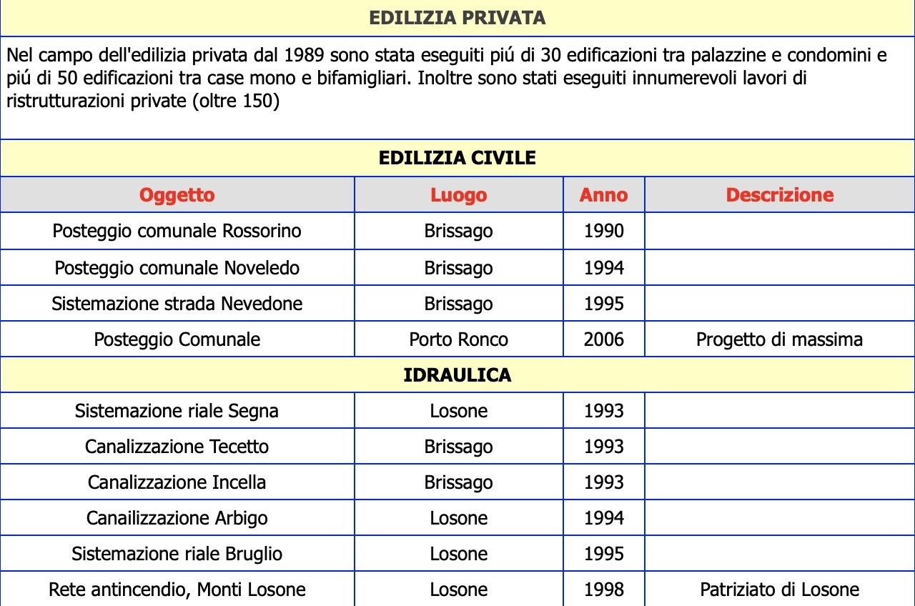 Svolge attività di progettazione, project management e direzione lavori di opere civili e di consulenza in campo informatico piu’ precisamente svolge attività nei seguenti campi: